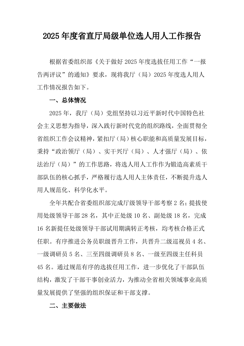 2025年度省直厅局级单位选人用人工作报告