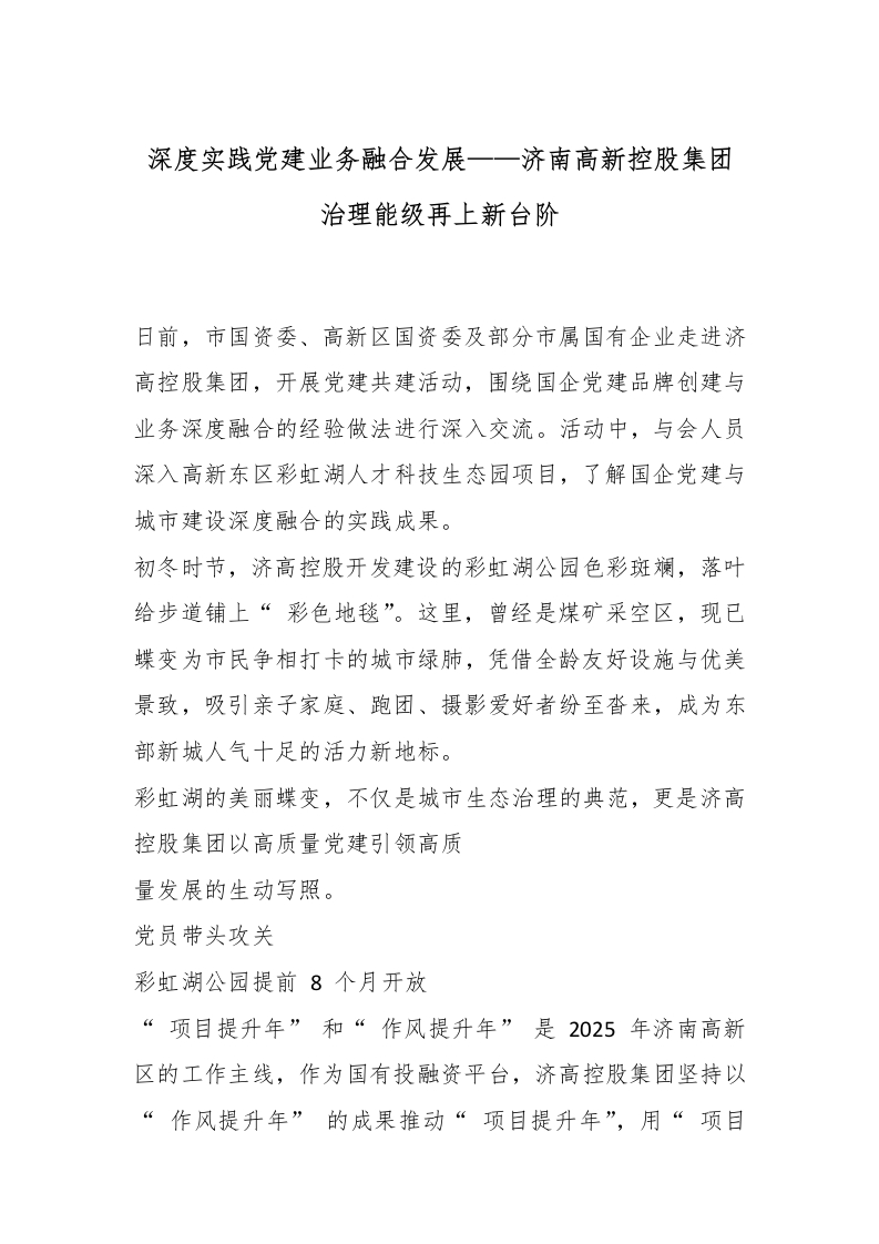深度实践党建业务融合发展——济南高新控股集团治理能级再上新台阶_副本