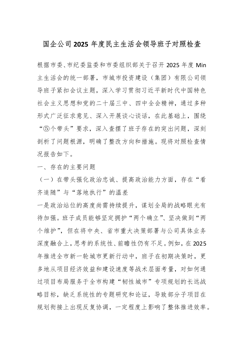 国企公司2025年度民主生活会领导班子对照检查_副本
