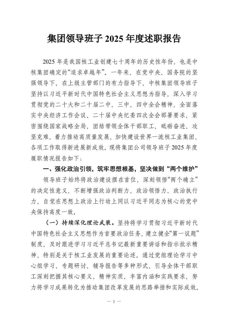 集团领导班子2025年度述职报告