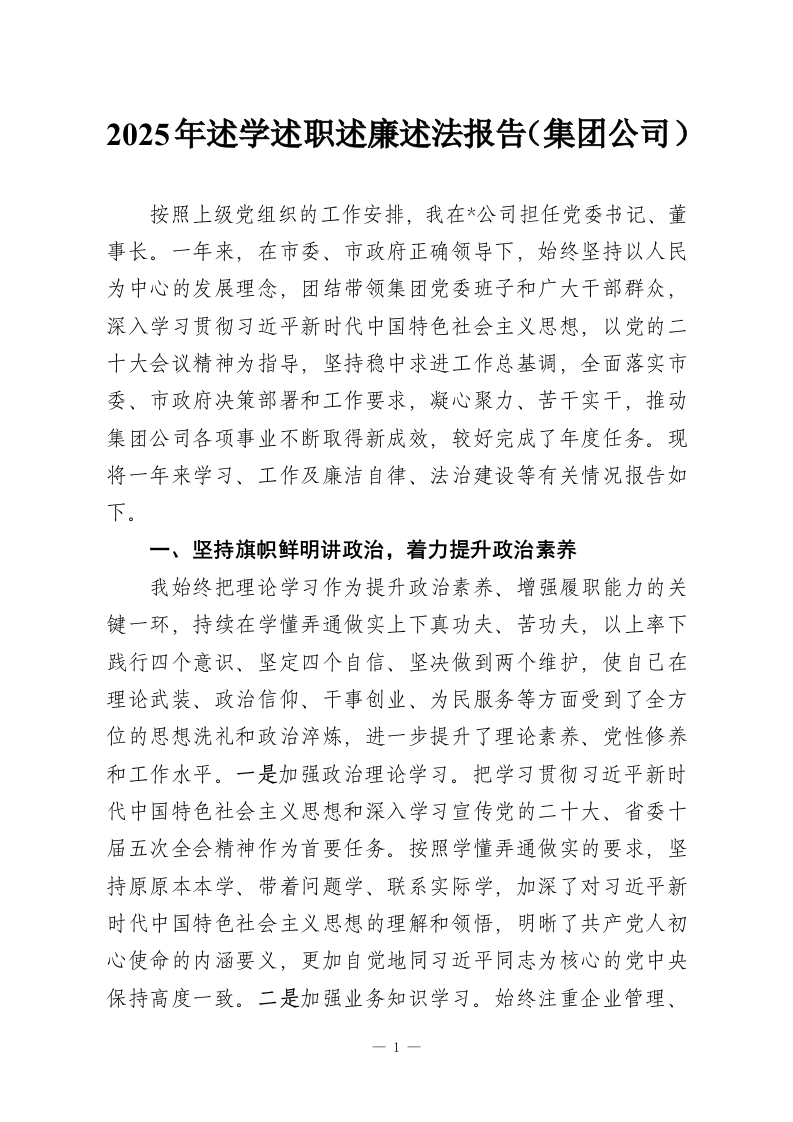 首页讲课讲稿2025年述学述职述廉述法报告(集团公司)