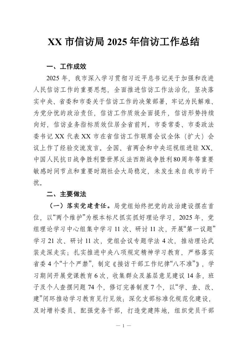 XX市信访局2025年信访工作总结