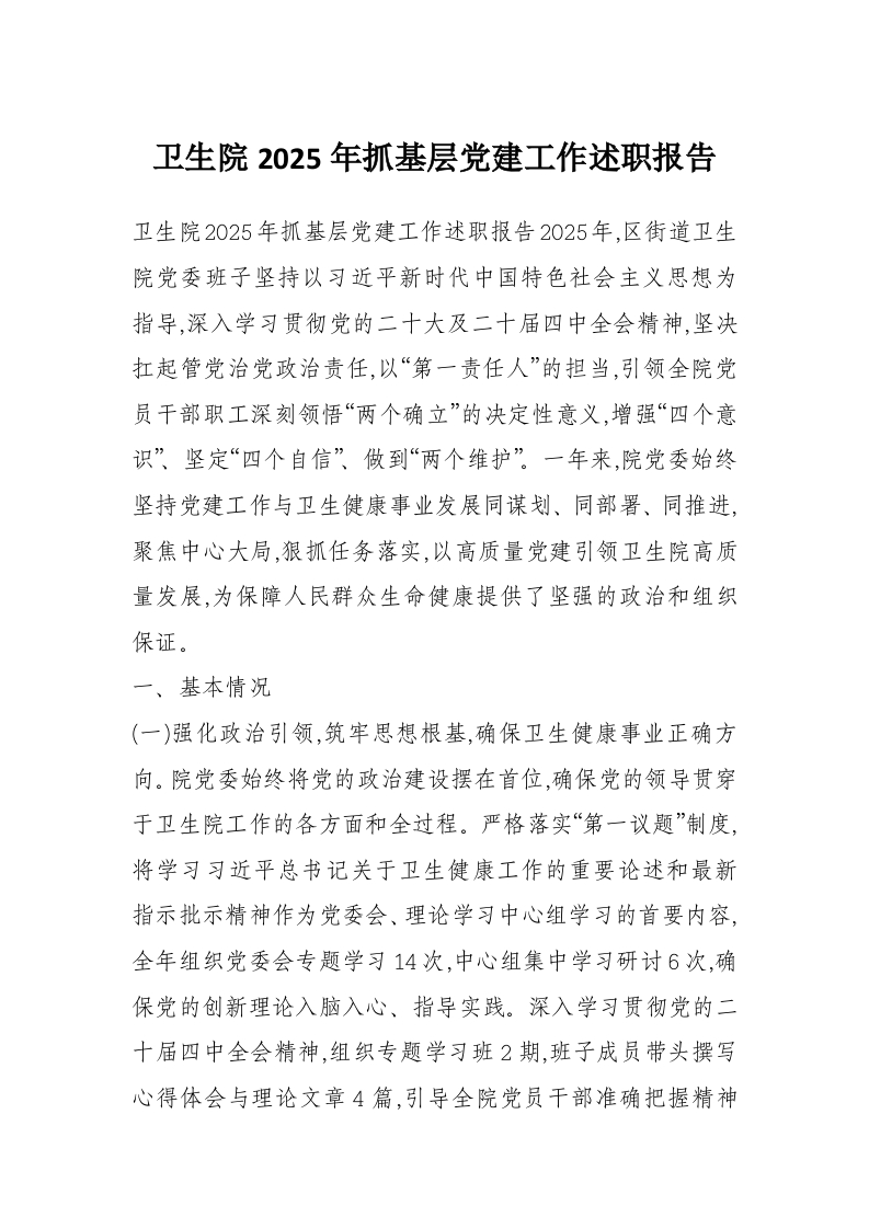 首页材料汇编卫生院2025年抓基层党建工作述职报告