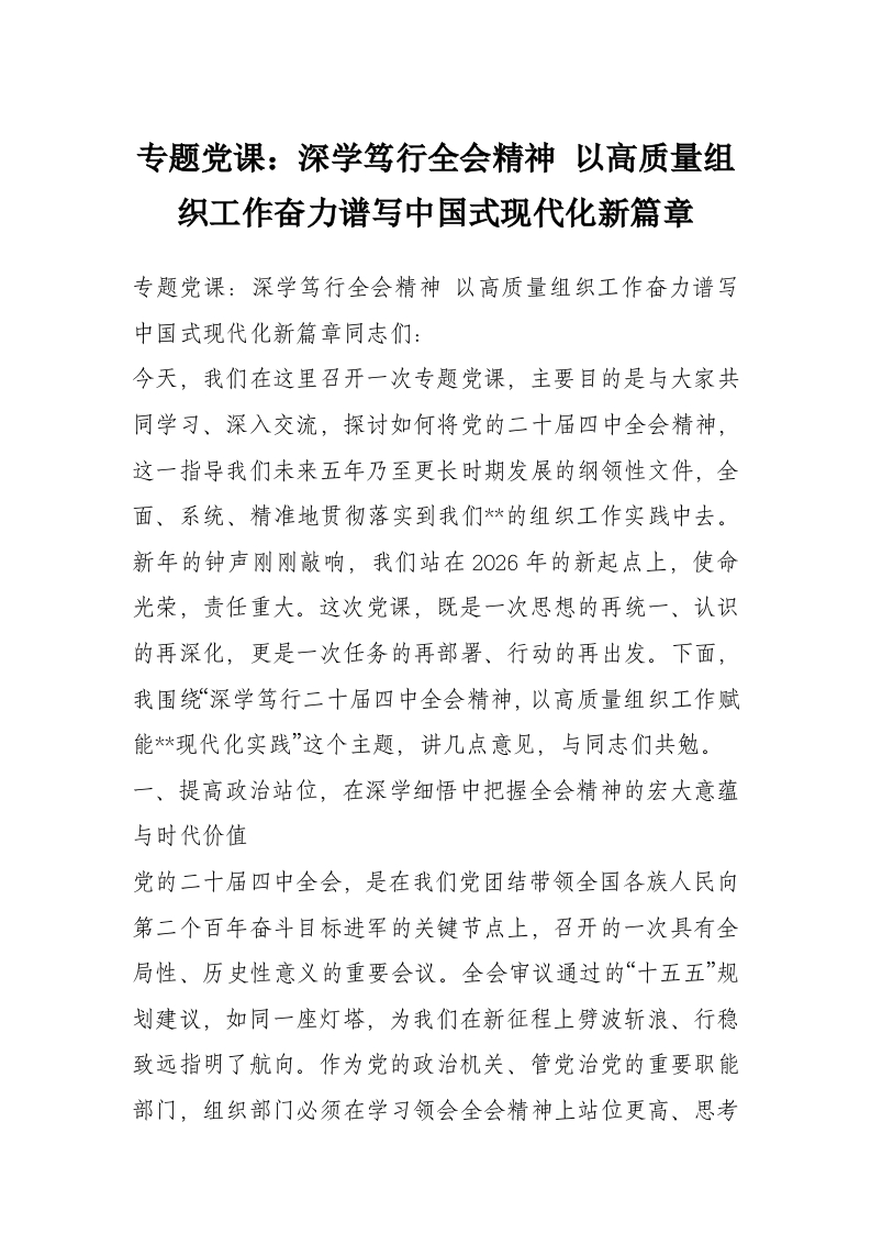 专题党课:深学笃行***精神 以高质量组织工作奋力谱写中国式现代化新篇章