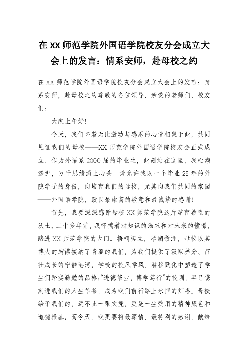 首页材料汇编在XX师范学院外国语学院校友分会成立大会上的发言:情系安师,赴母校之约