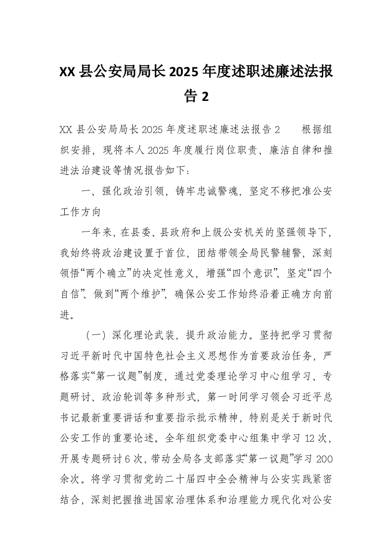 首页学习提升XX县公安局局长2025年度述职述廉述法报告2