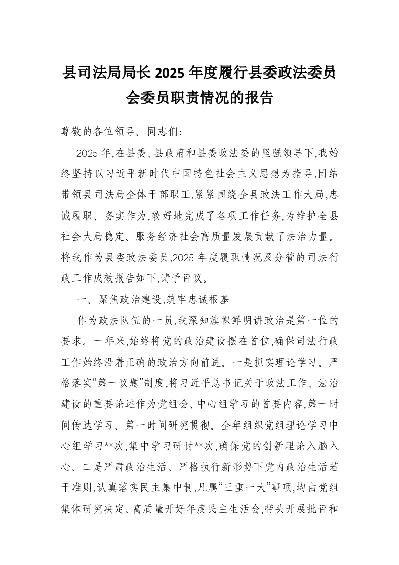 首页材料汇编县司法局局长2025年度履行县委政法委员会委员职责情况的报告