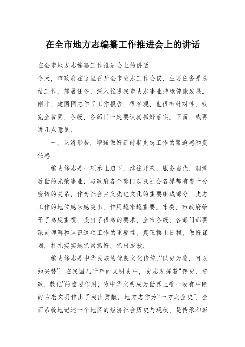 首页材料汇编在全市地方志编纂工作推进会上的讲话
