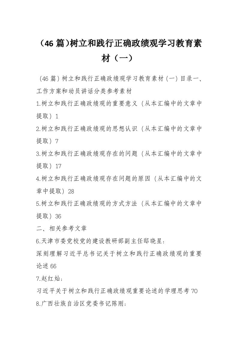首页精选范文(46篇)树立和践行正确政绩观学习教育素材(一)