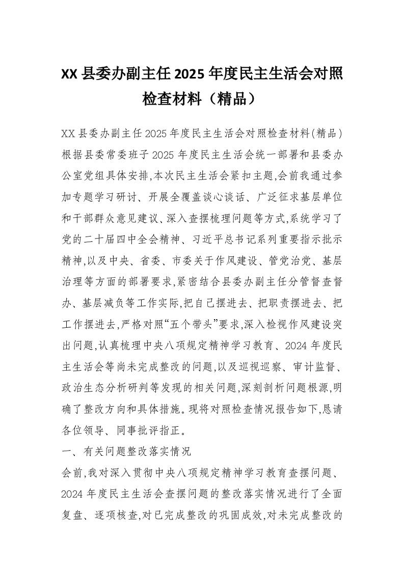 首页精选范文XX县委办副主任2025年度民主生活会对照检查材料(精品)