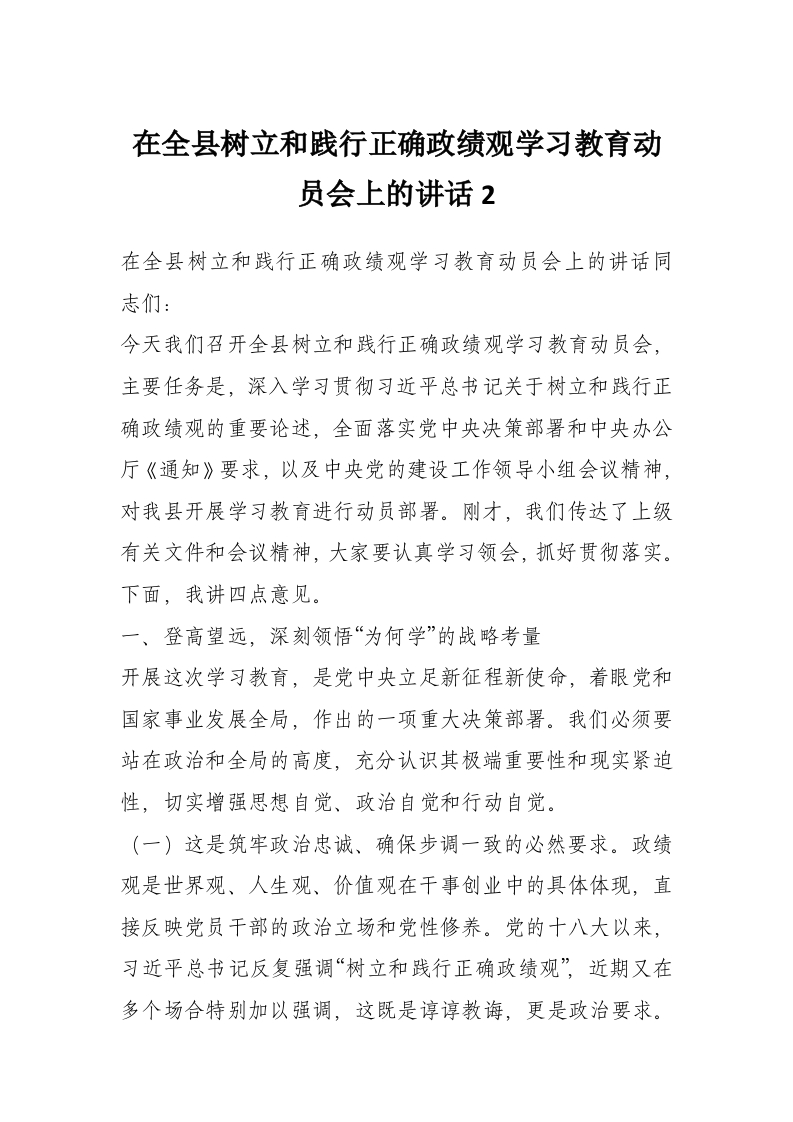 在全县树立和践行正确政绩观学习教育动员会上的讲话2
