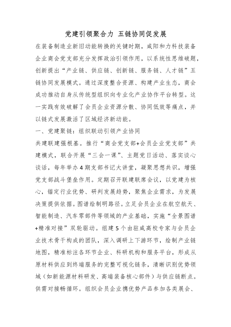 首页材料汇编党建引领聚合力 五链协同促发展
