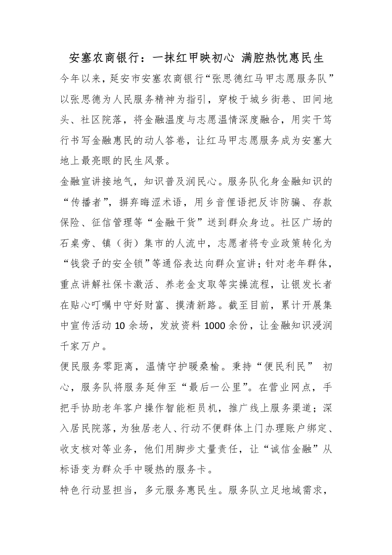 首页材料汇编安塞农商银行:一抹红甲映初心 满腔热忱惠民生