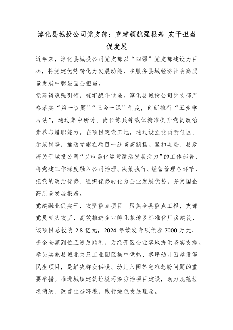 首页材料汇编淳化县城投公司党支部:党建领航强根基 实干担当促发展