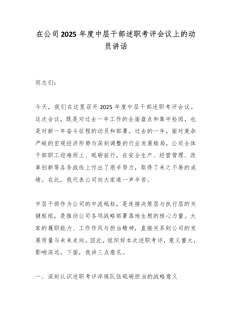 在公司2025年度中层干部述职考评会议上的动员讲话_副本
