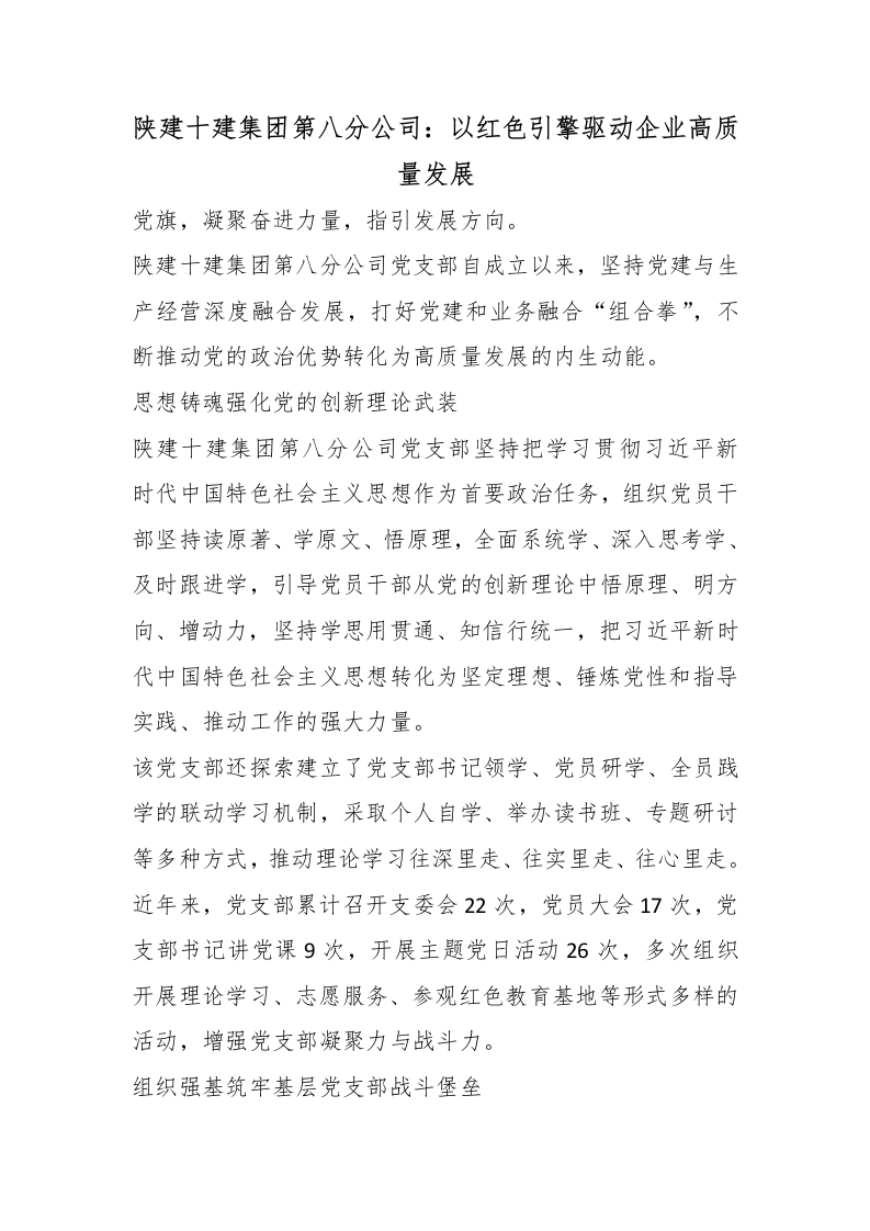 首页学习提升陕建十建集团第八分公司:以红色引擎驱动企业高质量发展_副本