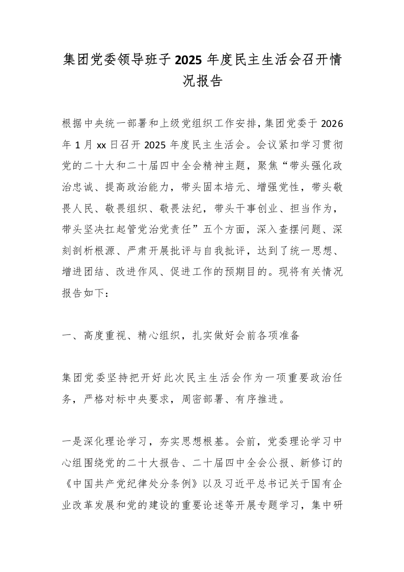 首页学习提升集团党委领导班子2025年度民主生活会召开情况报告_副本