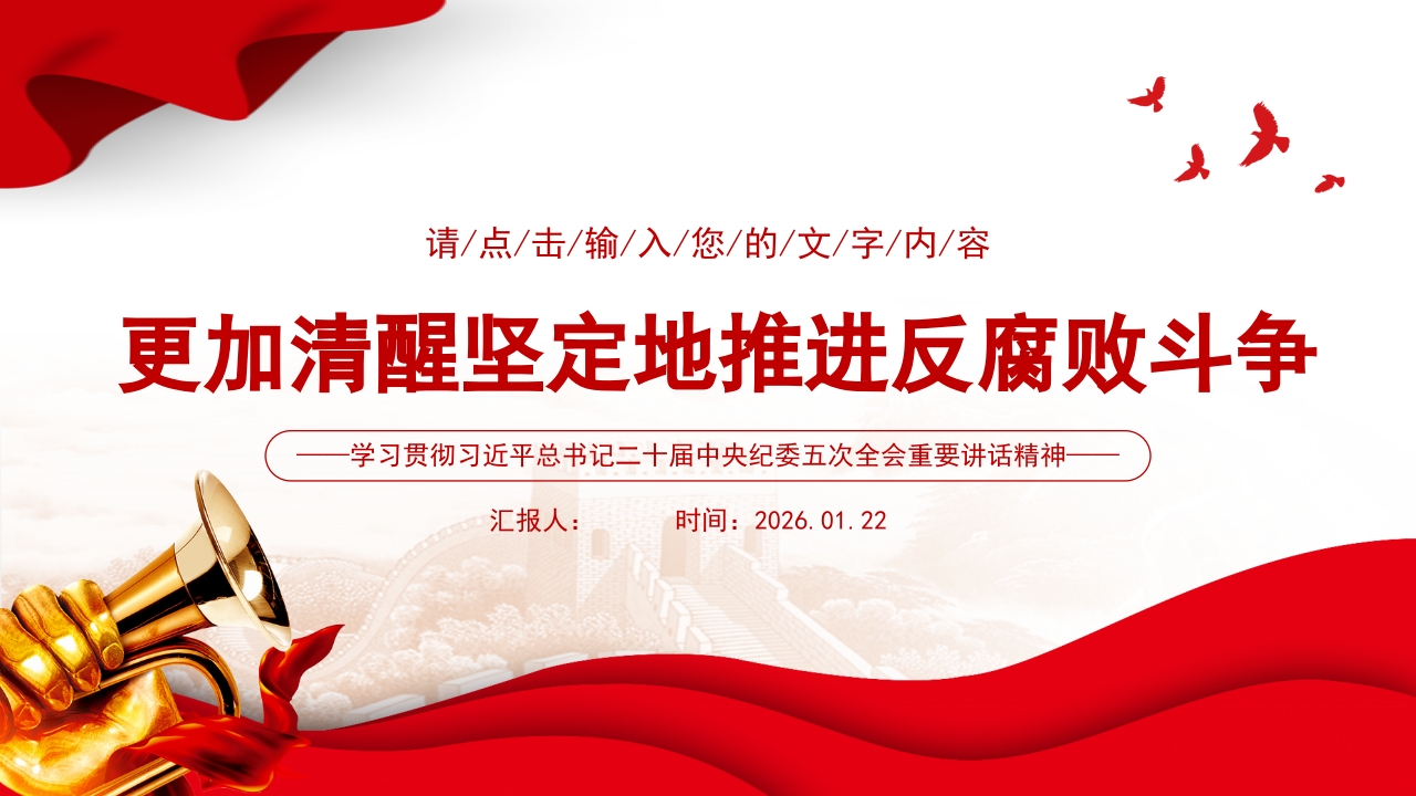 红色精美更加清醒坚定地推进反腐败斗争PPT二十届中央纪委五次***课件下载