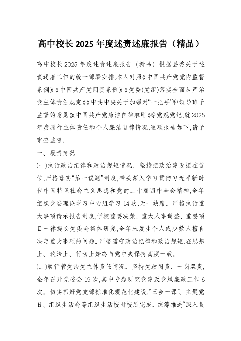 高中校长2025年度述责述廉报告(精品)