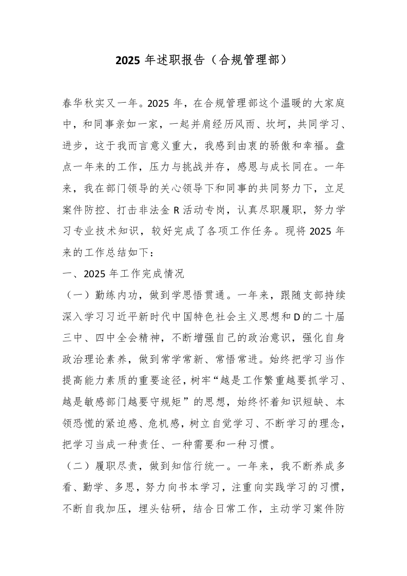 2025年述职报告(合规管理部)