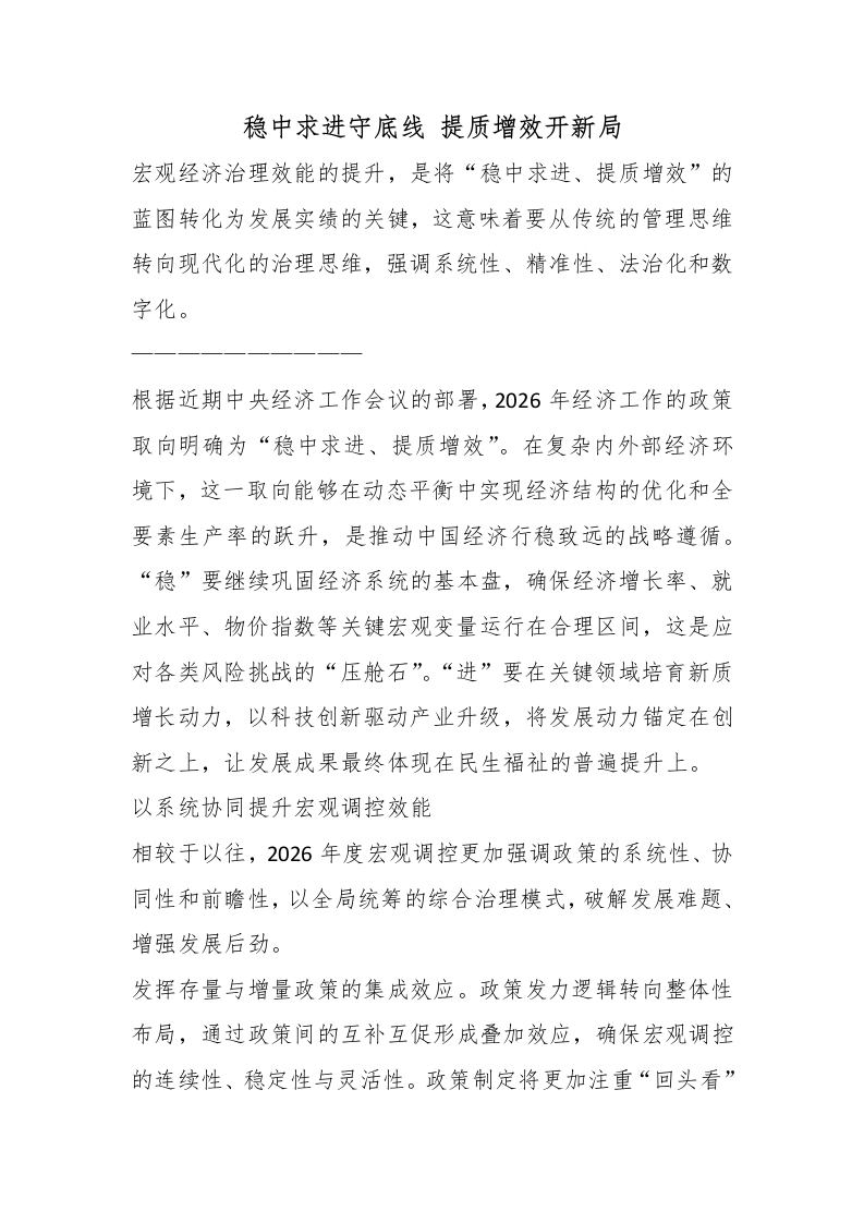 首页稳中求进守底线 提质增效开新局