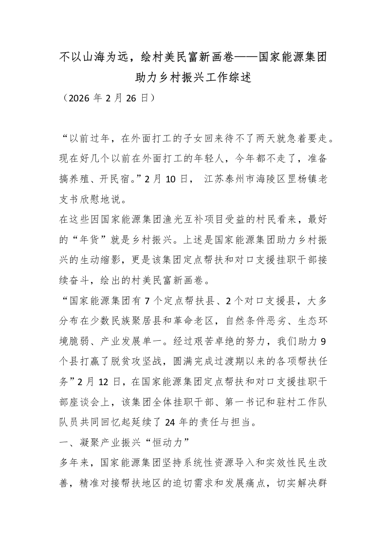 不以山海为远,绘村美民富新画卷——国家能源集团助力乡村振兴工作综述