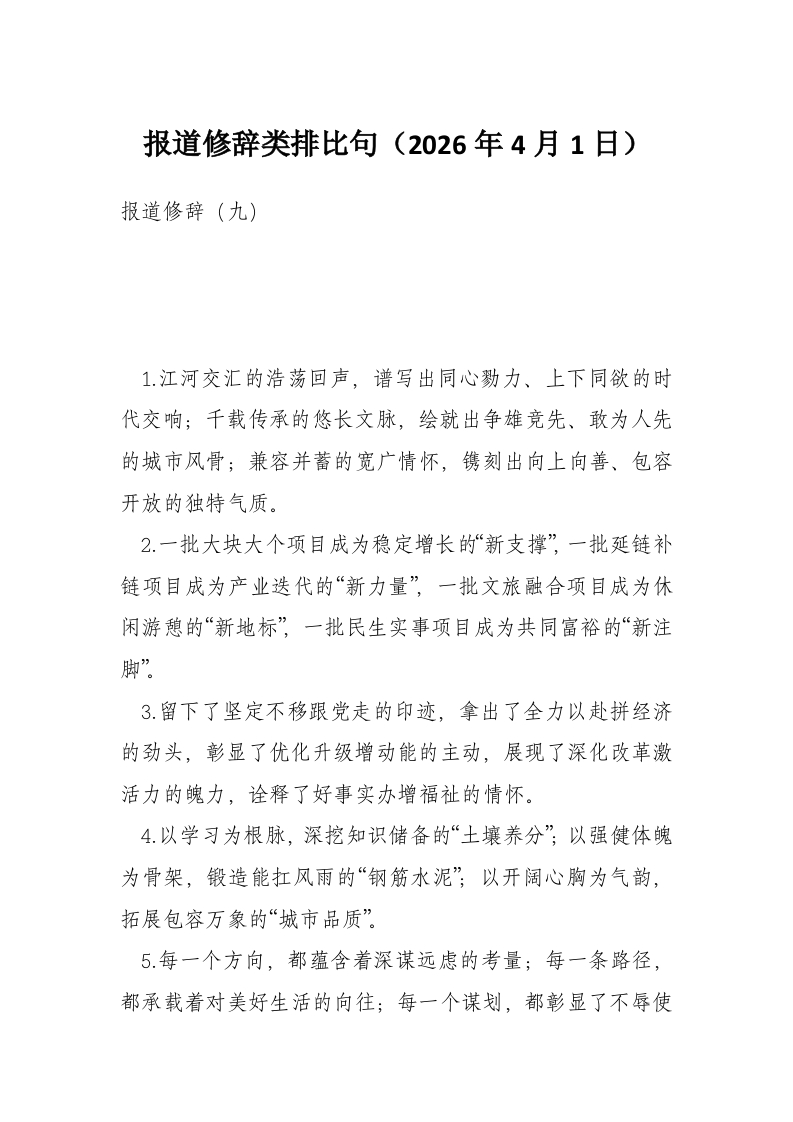 报道修辞类排比句(2026年4月1日)
