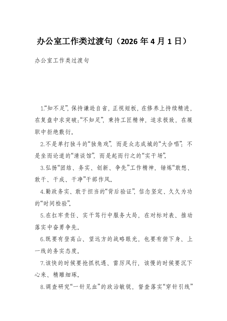 办公室工作类过渡句(2026年4月1日)