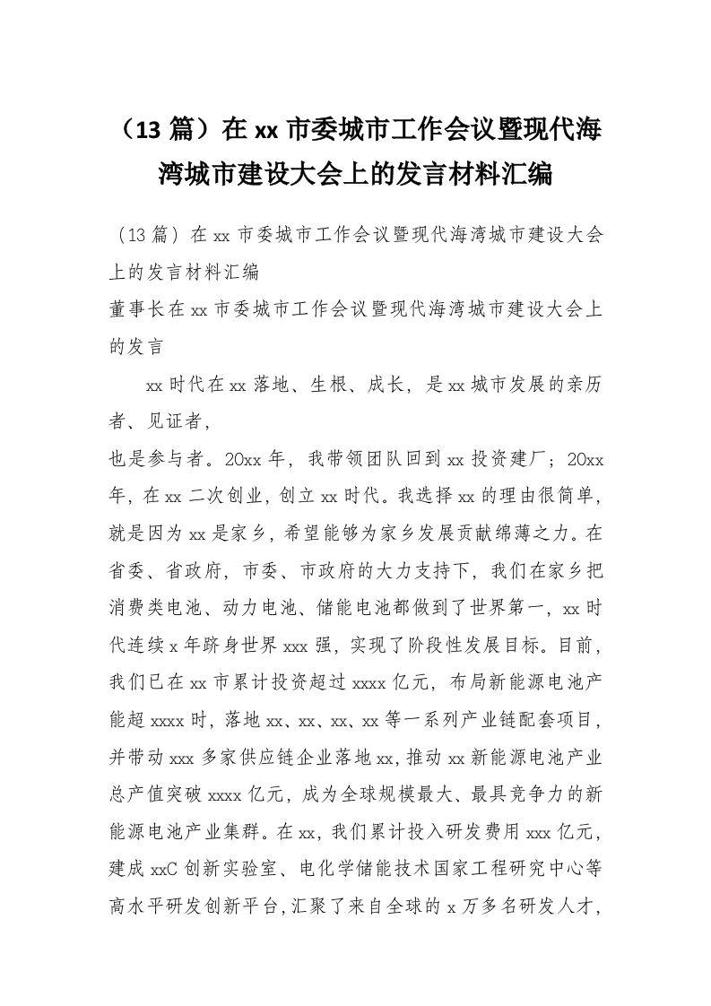 - (57篇)在xx市政协会议大会上的发言材料汇编