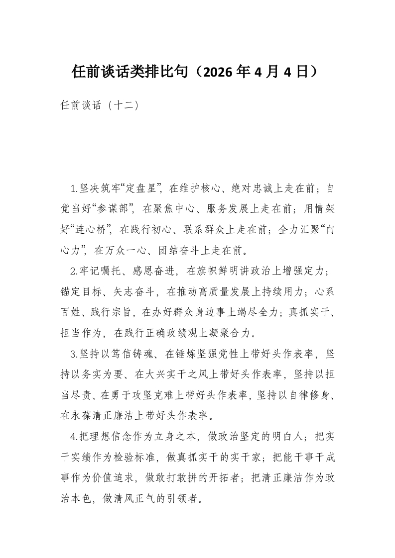 任前谈话类排比句(2026年4月4日)