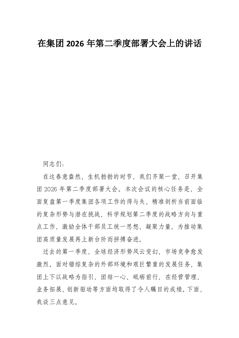 首页工作文档在集团2026年第二季度部署大会上的讲话