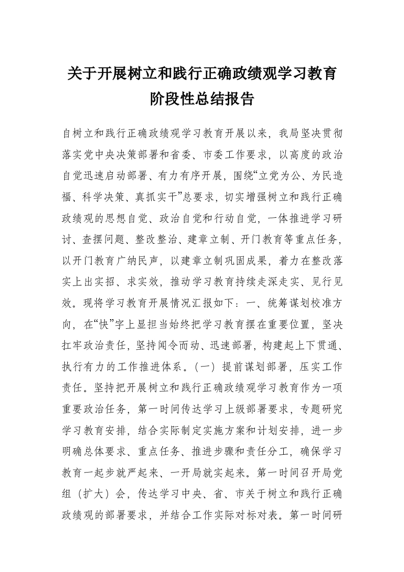 关于开展树立和践行正确政绩观学习教育阶段性总结报告