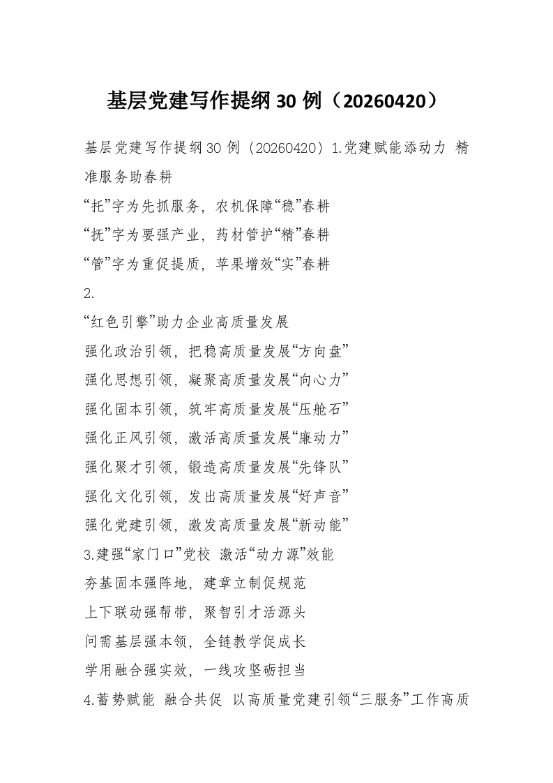 基层党建写作提纲30例(20260419)