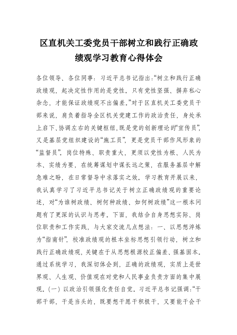 区直机关工委党员干部树立和践行正确政绩观学习教育心得体会