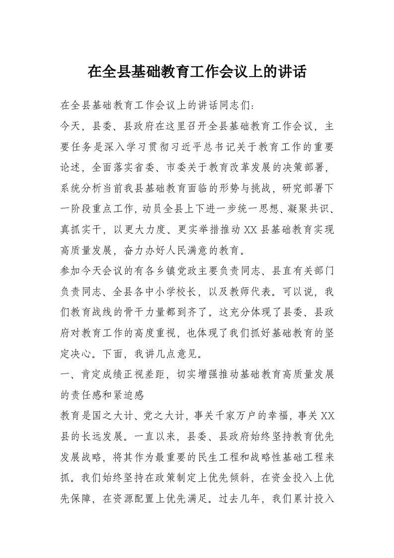 - 在全县县乡领导班子换届工作会议上的讲话