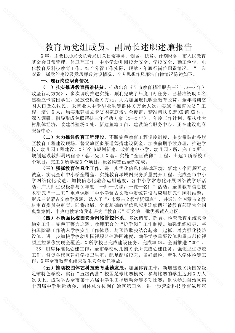 教育局党组成员、副局长述职述廉报告