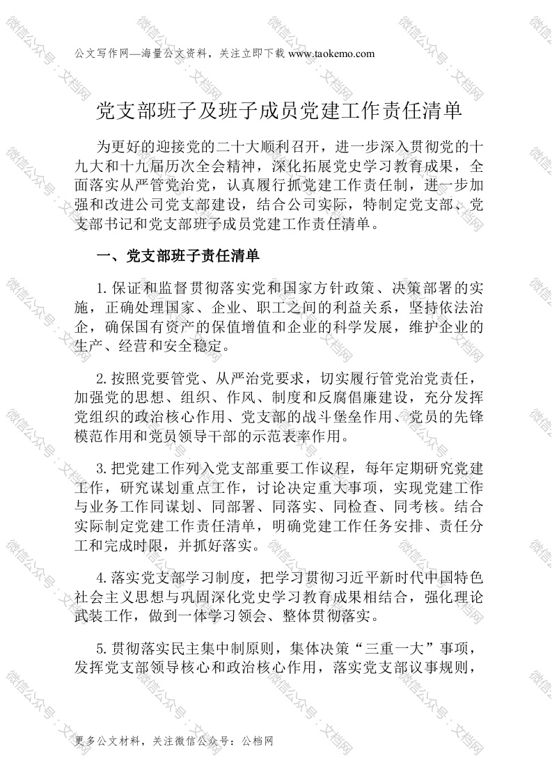 首页讲课讲稿党支部班子及班子成员党建工作责任清单