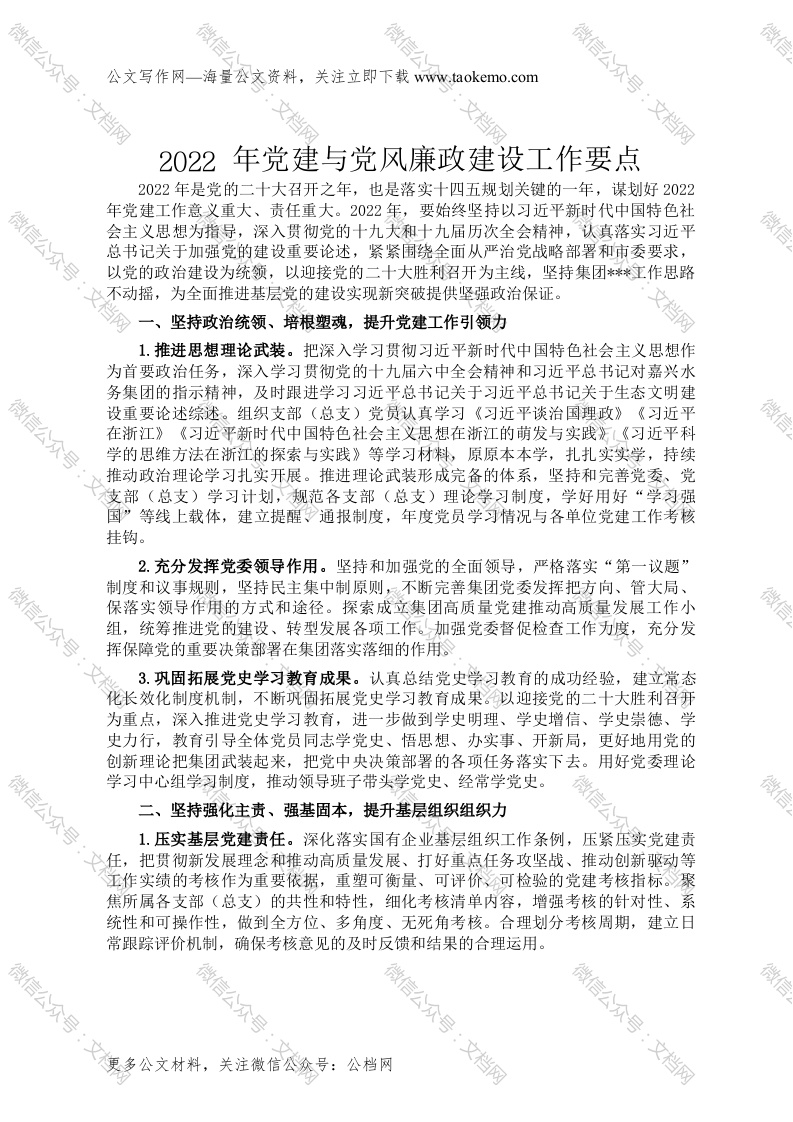 首页讲课讲稿2022年党建与党风廉政建设工作要点