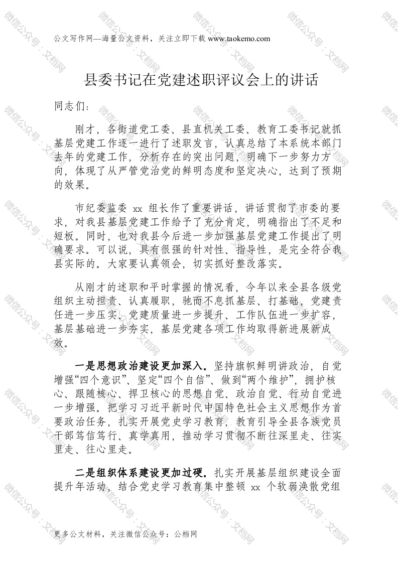 首页材料汇编县委书记在党建述职评议会上的讲话