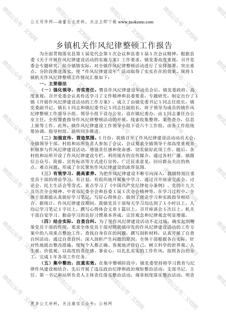 首页材料汇编乡镇机关作风纪律整顿工作报告