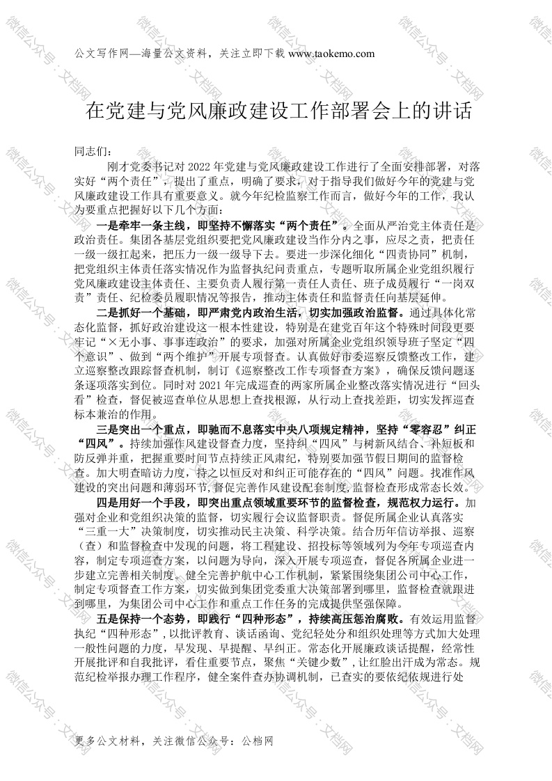首页学习提升在党建与党风廉政建设工作部署会上的讲话