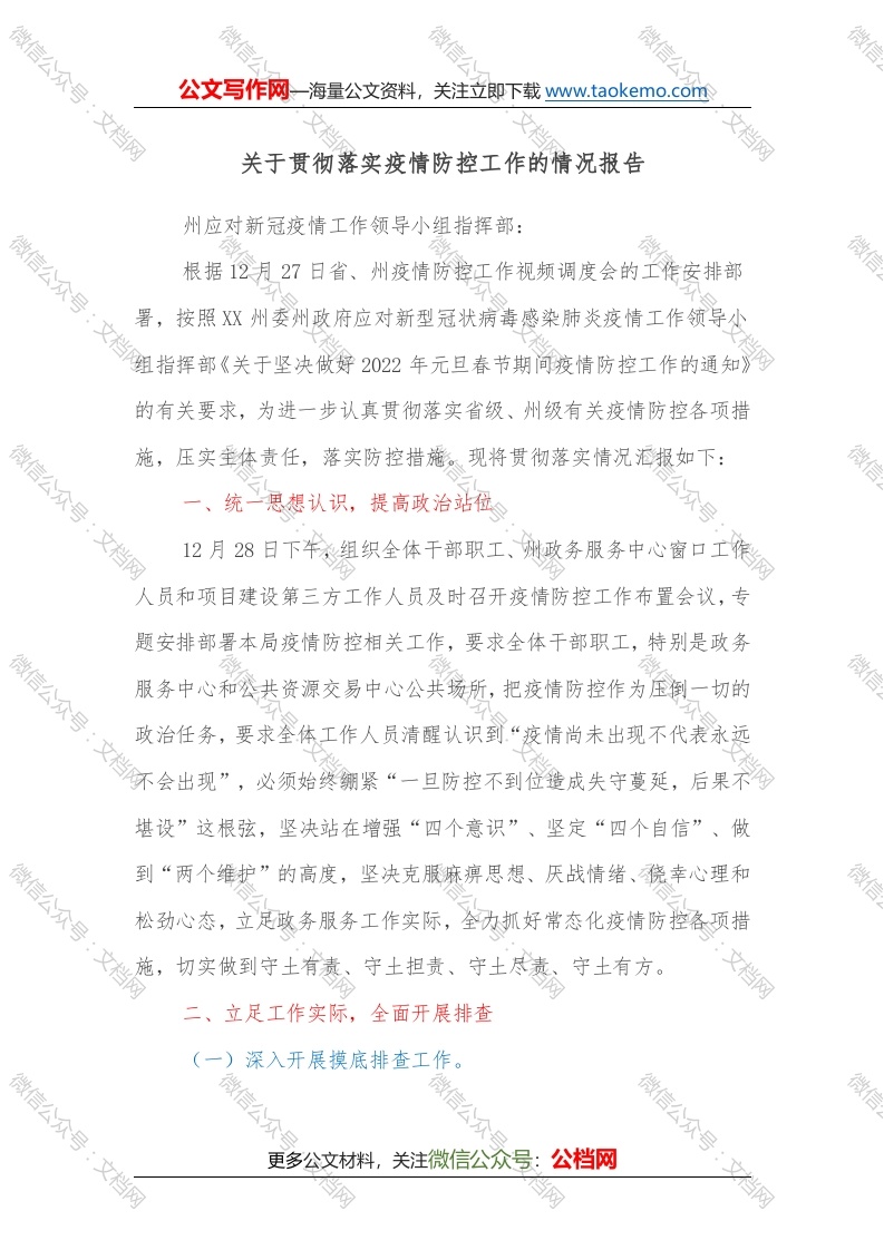 首页写作素材关于贯彻落实疫情防控工作的情况报告