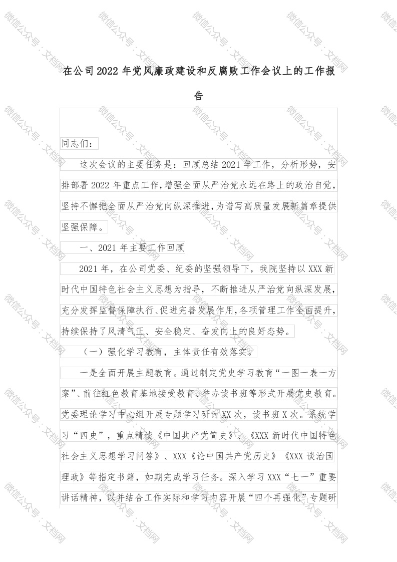 首页写作素材在公司2022年党风廉政建设和反腐败工作会议上的工作报告