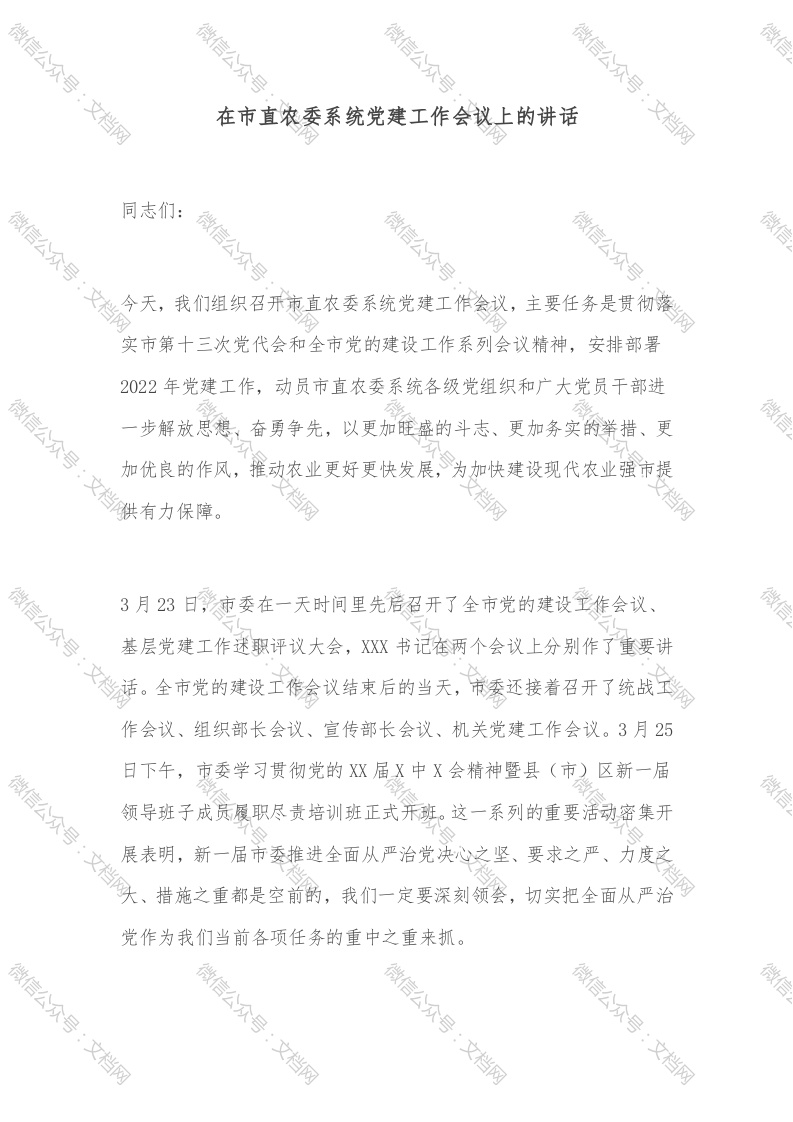 首页写作素材在市直农委系统党建工作会议上的讲话