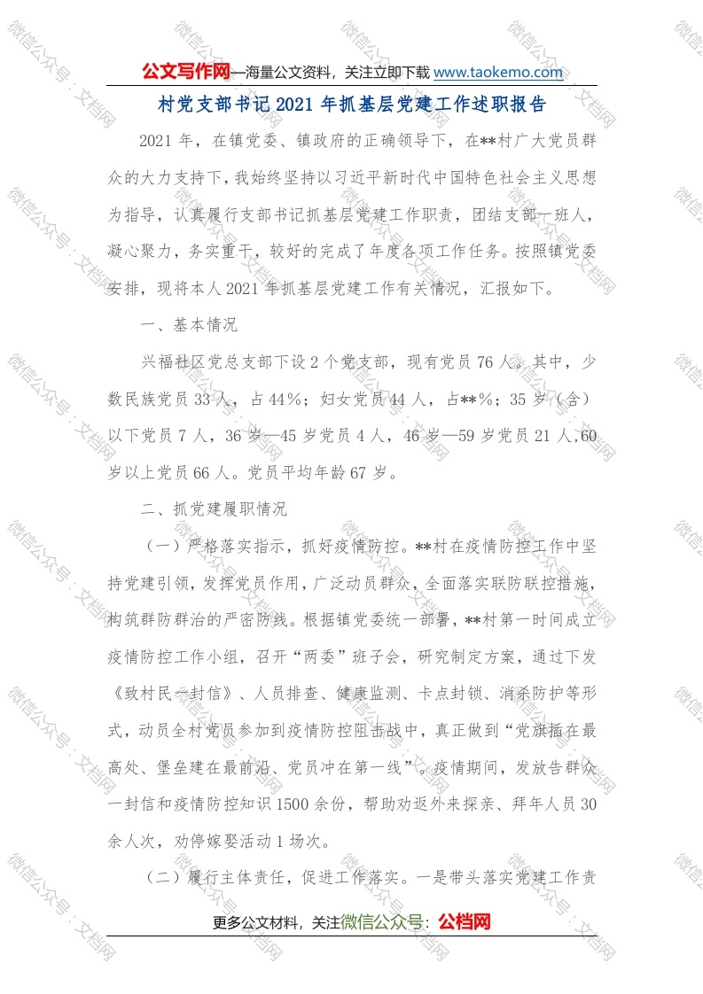 村党支部书记2021年抓基层党建工作述职报告 (1)