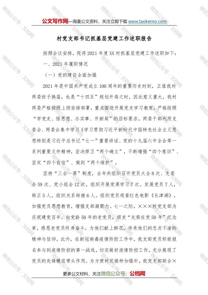 首页精选范文村党支部书记抓基层党建工作述职报告