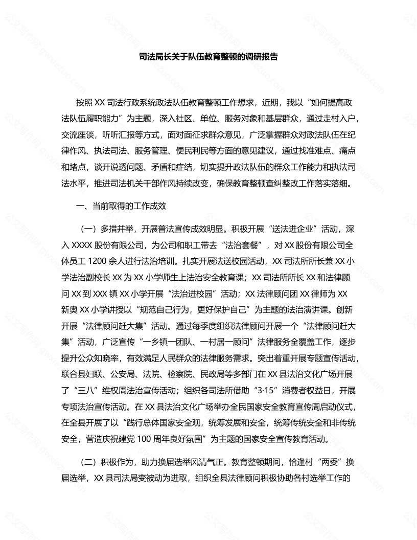 首页工作文档司法局长关于队伍教育整顿的调研报告