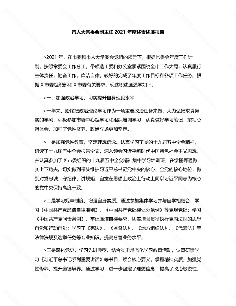 首页写作素材市人大常委会副主任2021年度述责述廉报告