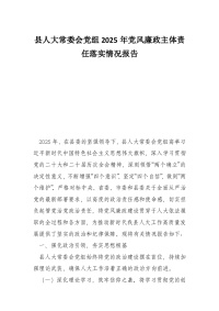 县人大常委会党组2025年党风廉政主体责任落实情况