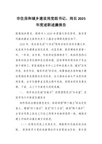 市住房和城乡建设局党组书记、局长2025年度述职述廉